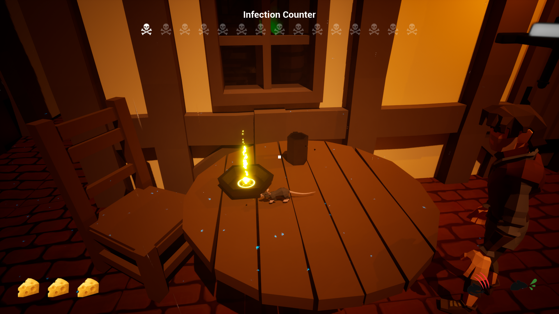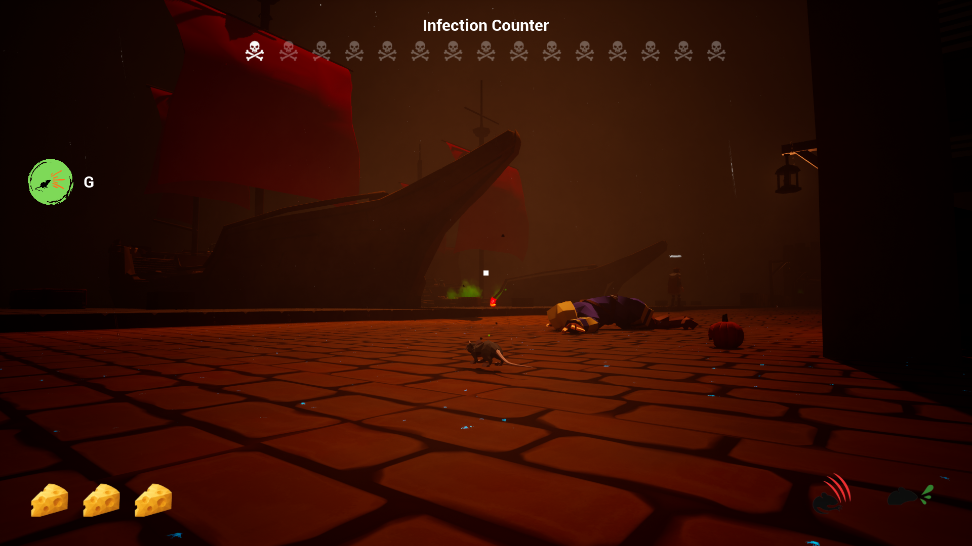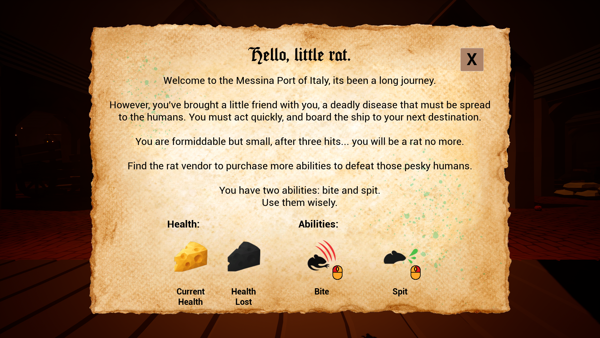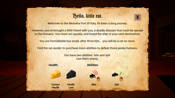 Find unique upgrades and health pickups throughout the level. Collect coins to spend at the one and only rat vendor to purchase more chaotic abilities to release on innocent people.
